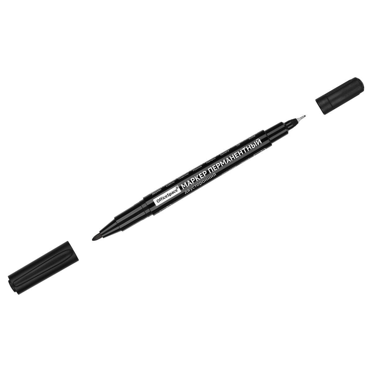 Маркер перманентный двухсторонний OfficeSpace черный, пулевидный, 0,5/2,0мм