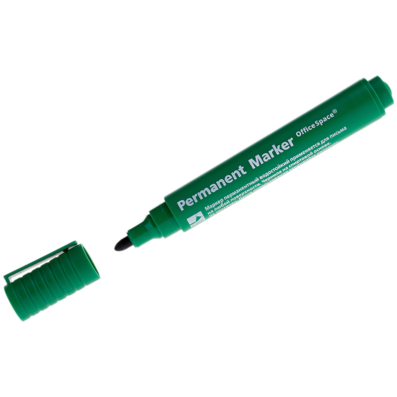 Маркер перманентный OfficeSpace "Contact" зеленый, пулевидный, без клипа, 3мм