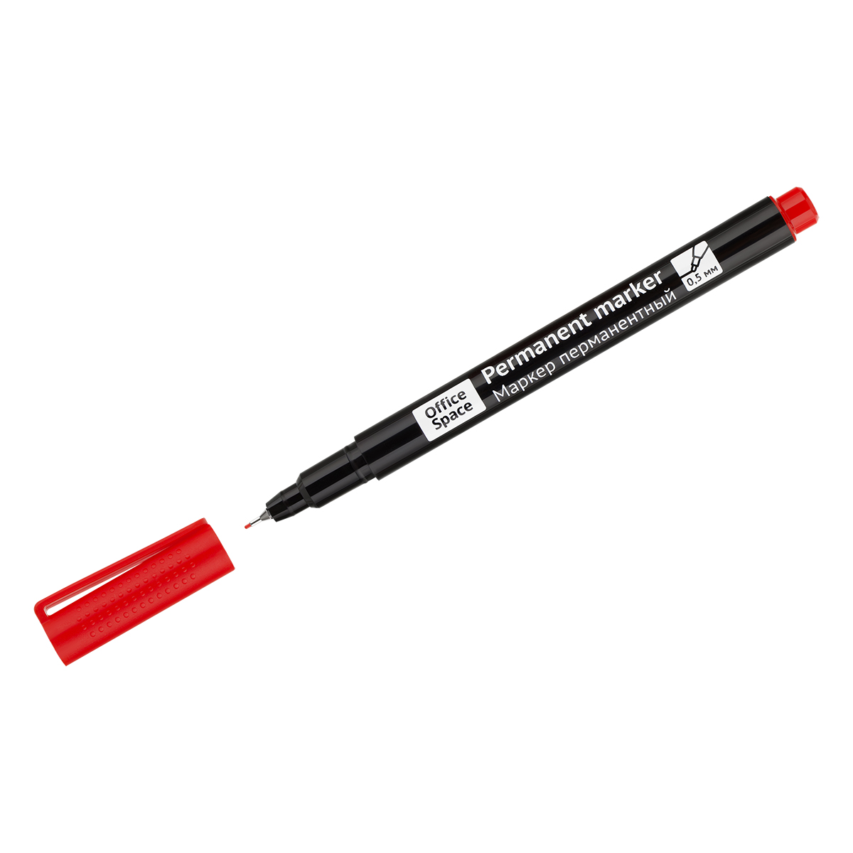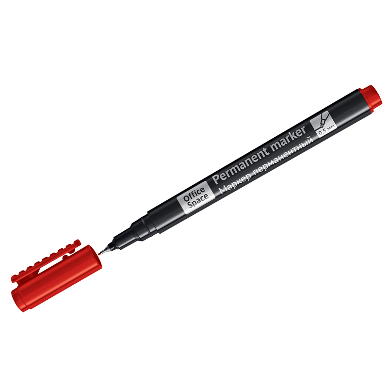 Маркер перманентный OfficeSpace красный, тонкий металл. наконечник, 0,5мм