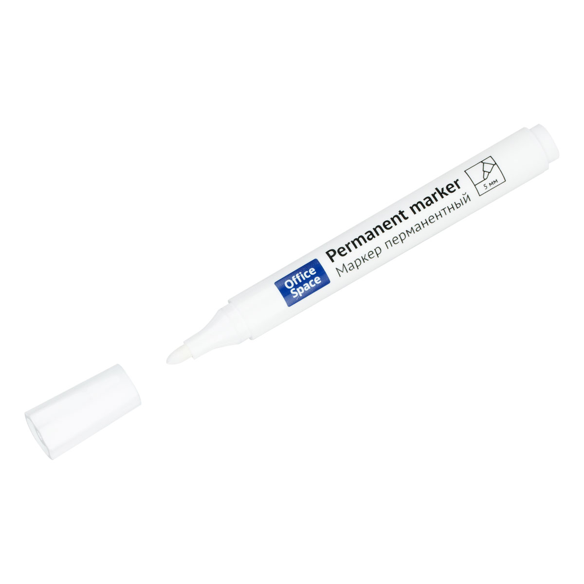 Маркер перманентный OfficeSpace белый, пулевидный, 5мм