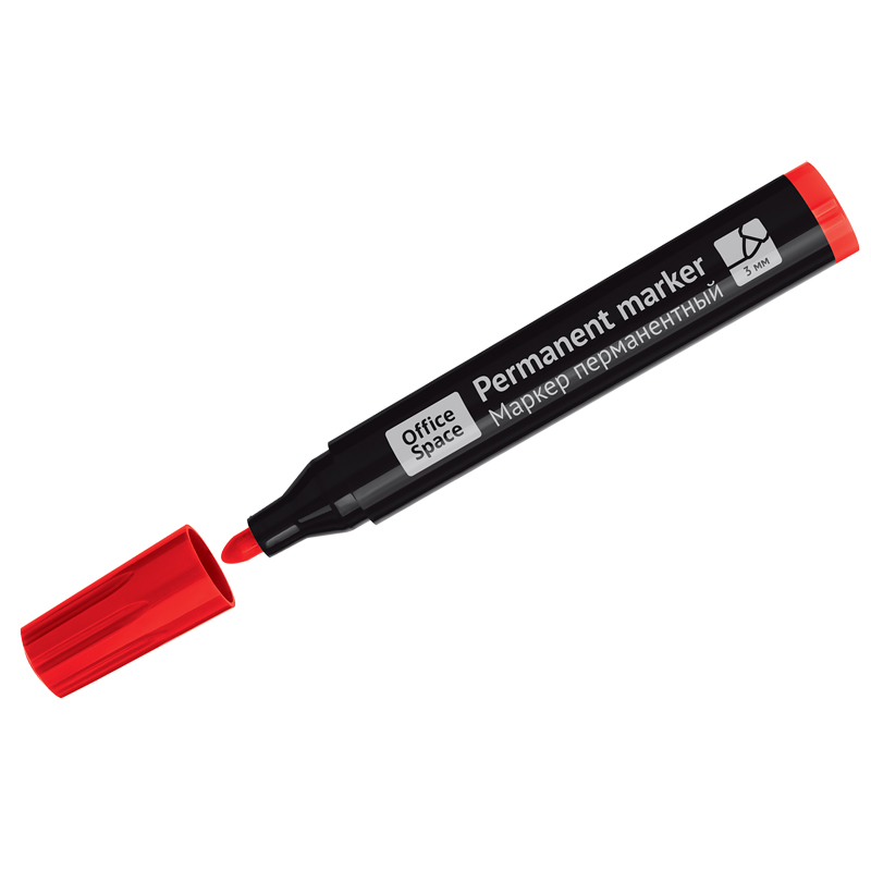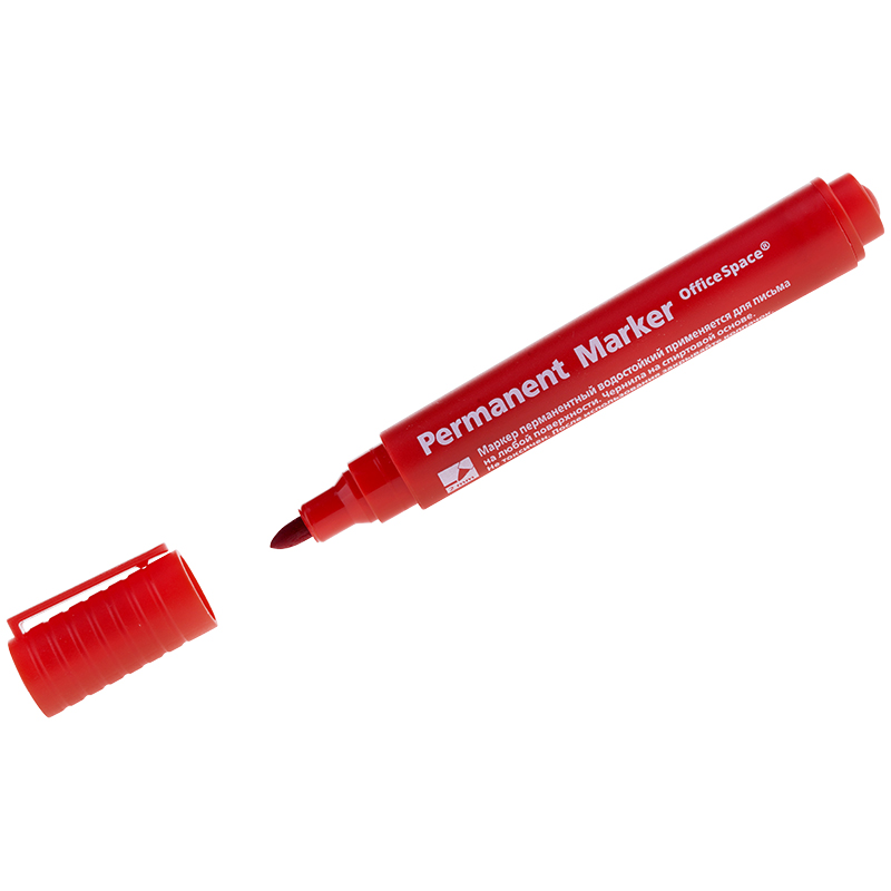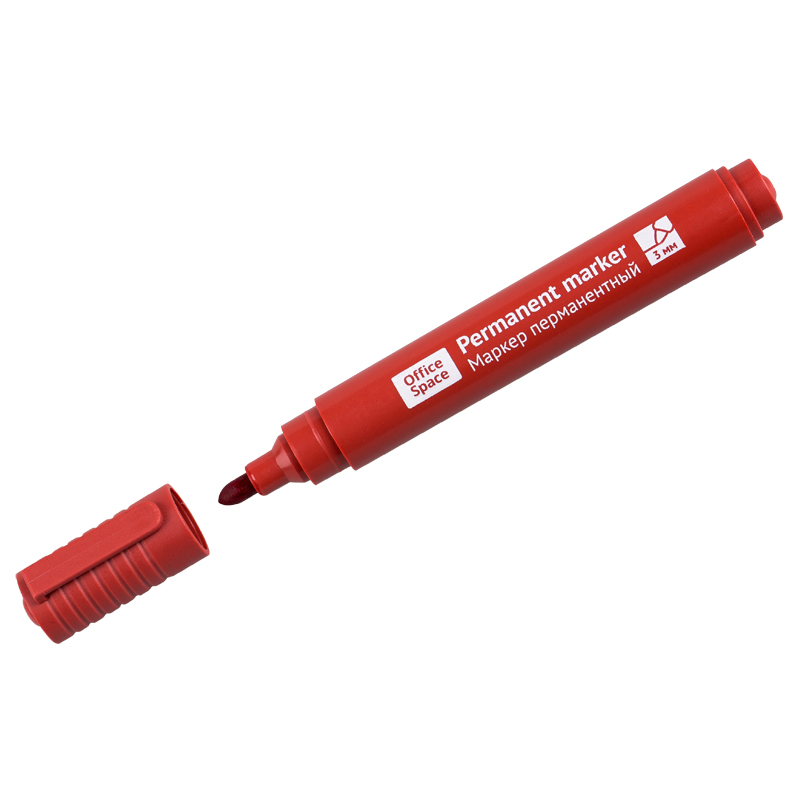 Маркер перманентный OfficeSpace "Contact" красный, пулевидный, без клипа, 3мм