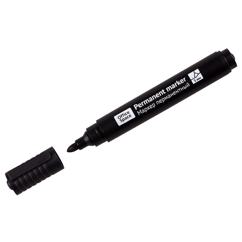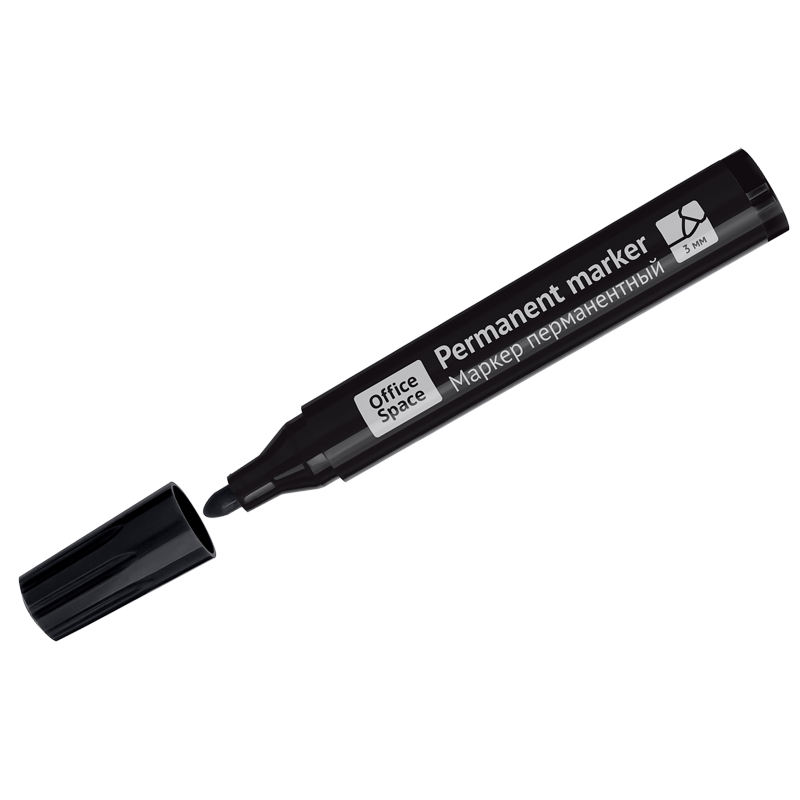 Маркер перманентный OfficeSpace "Contact" черный, пулевидный, без клипа, 3мм