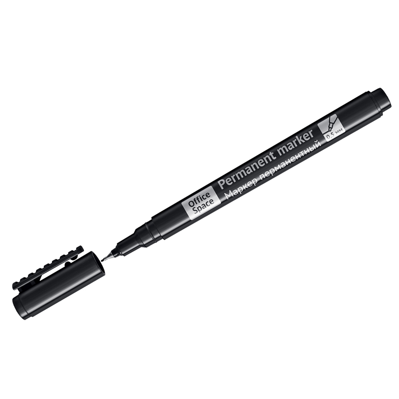Маркер перманентный OfficeSpace черный, тонкий металл. наконечник, 0,5мм