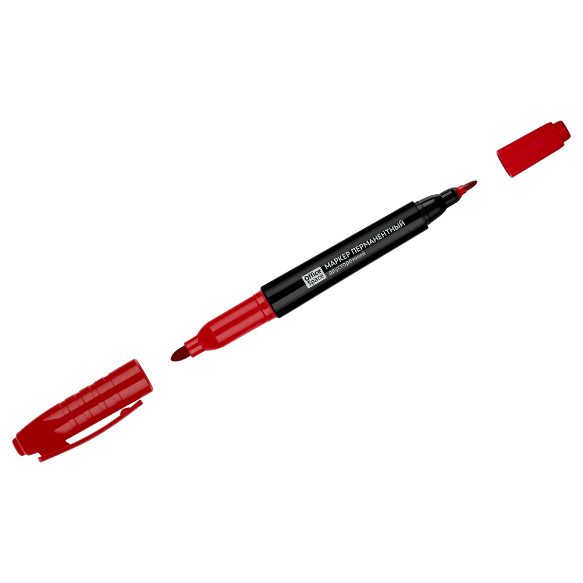 Маркер перманентный двухсторонний OfficeSpace красный, пулевидный, 0,8/2,2мм