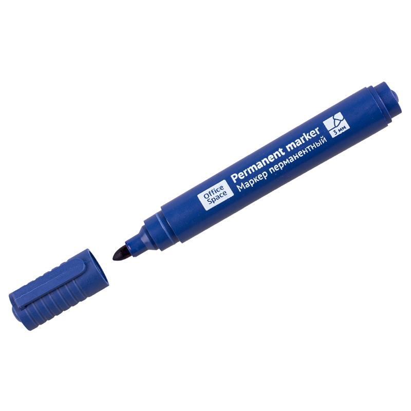 Маркер перманентный OfficeSpace "Contact" синий, пулевидный, без клипа, 3мм