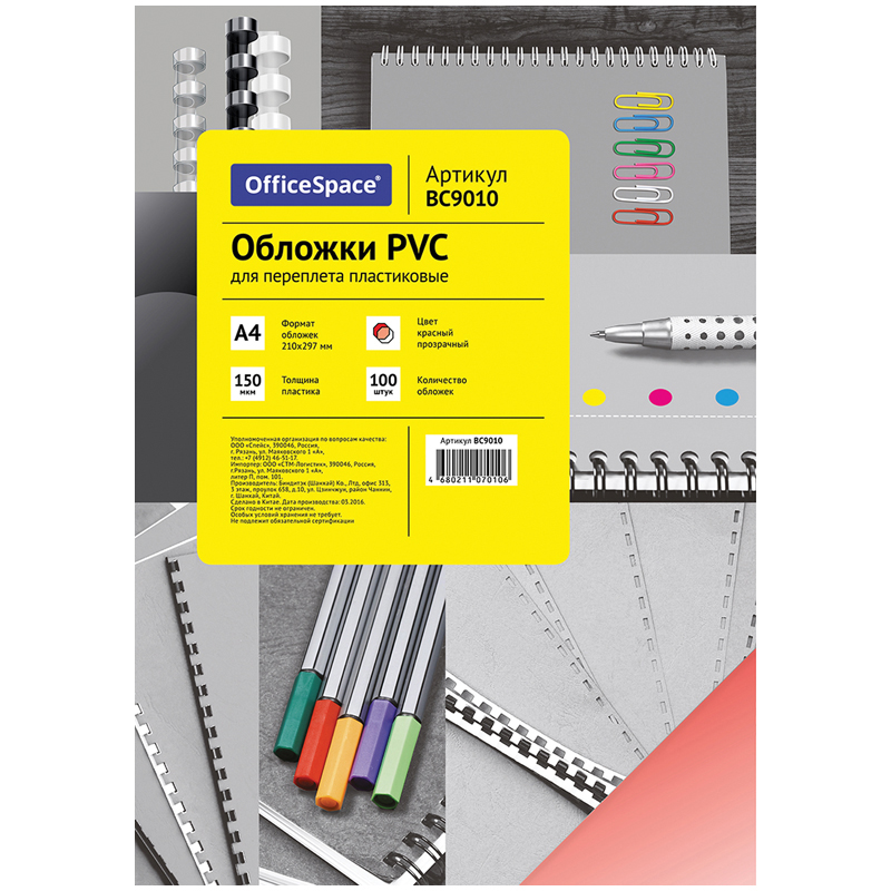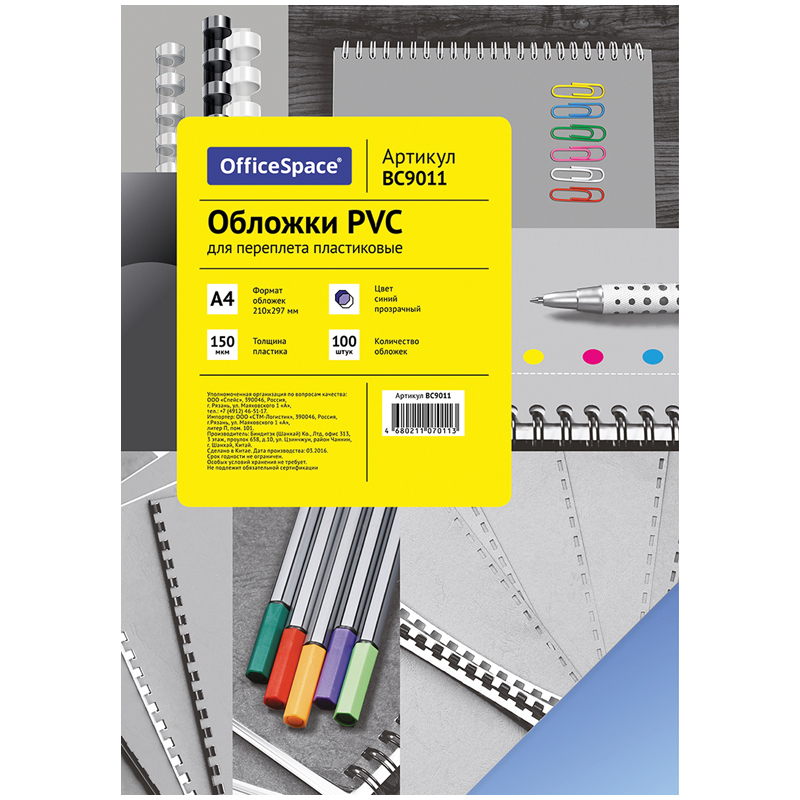 УЦЕНКА - Обложка А4 OfficeSpace "PVC" 300мкм, прозрачный бесцветный пластик, 100л.