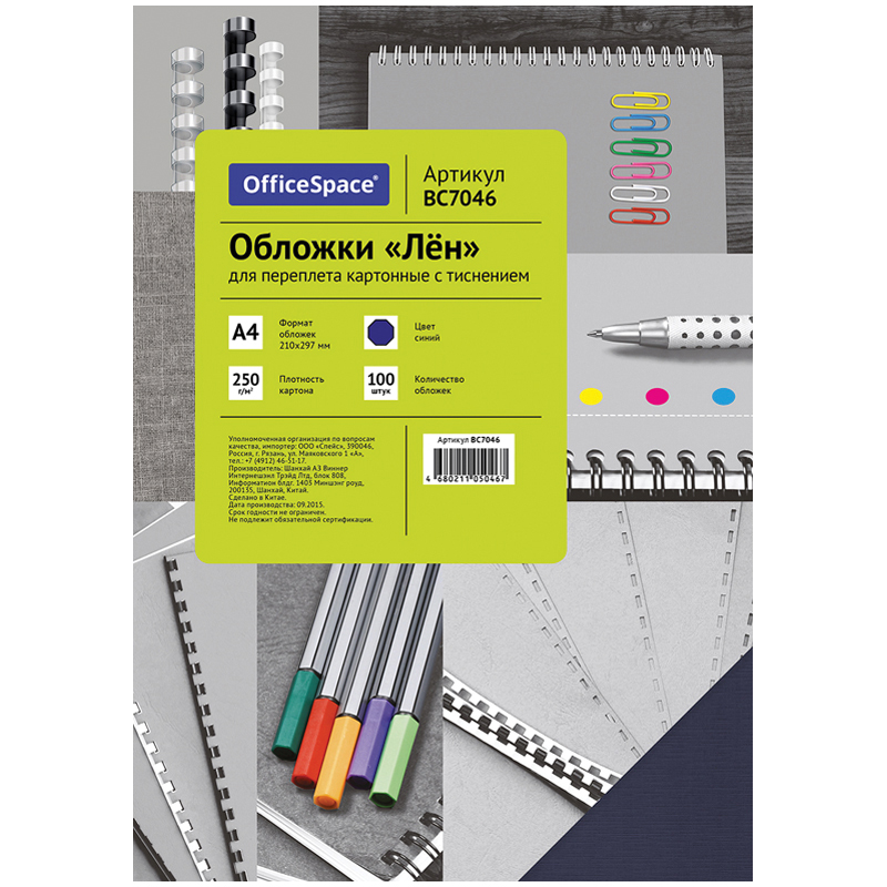 Обложка А4 OfficeSpace "Лен" 250г/кв.м, синий картон, 100л.