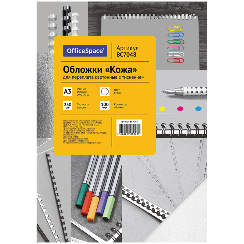 Обложка А3 OfficeSpace "Кожа" 230г/кв.м, белый картон, 100л.