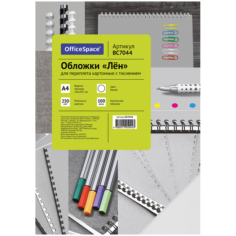 Обложка А4 OfficeSpace "Лен" 250г/кв.м, белый картон, 100л.