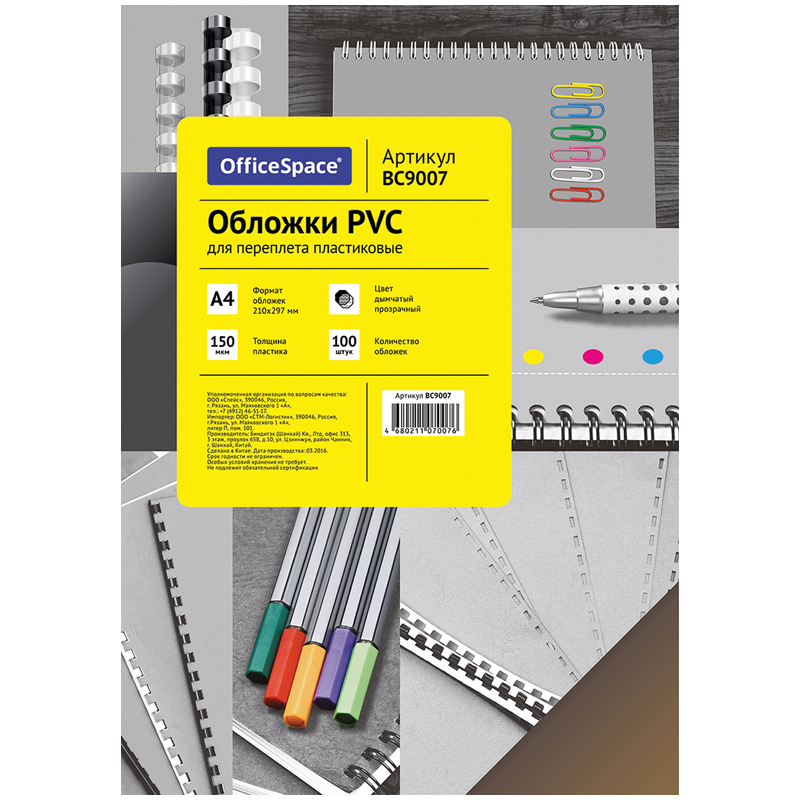 УЦЕНКА - Обложка А4 OfficeSpace "PVC" 150мкм, прозрачный дымчатый пластик, 100л.
