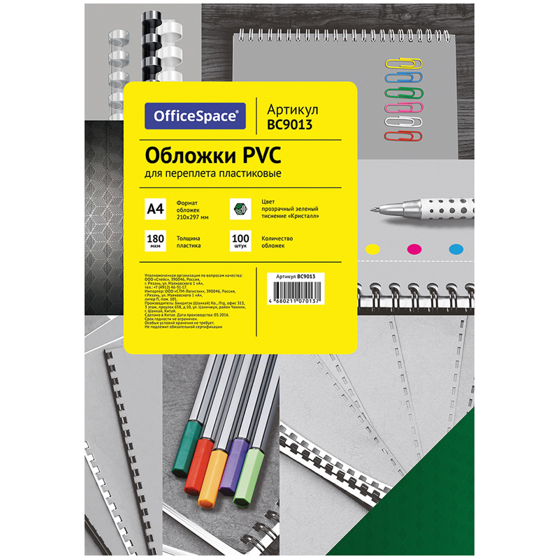 Обложка А4 OfficeSpace "PVC" 180мкм, "Кристалл" прозрачный зеленый пластик, 100л.