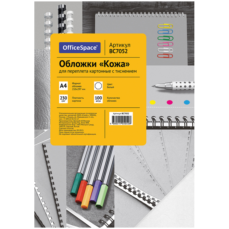 Обложка А4 OfficeSpace "Кожа" 230г/кв.м, белый картон, 100л.