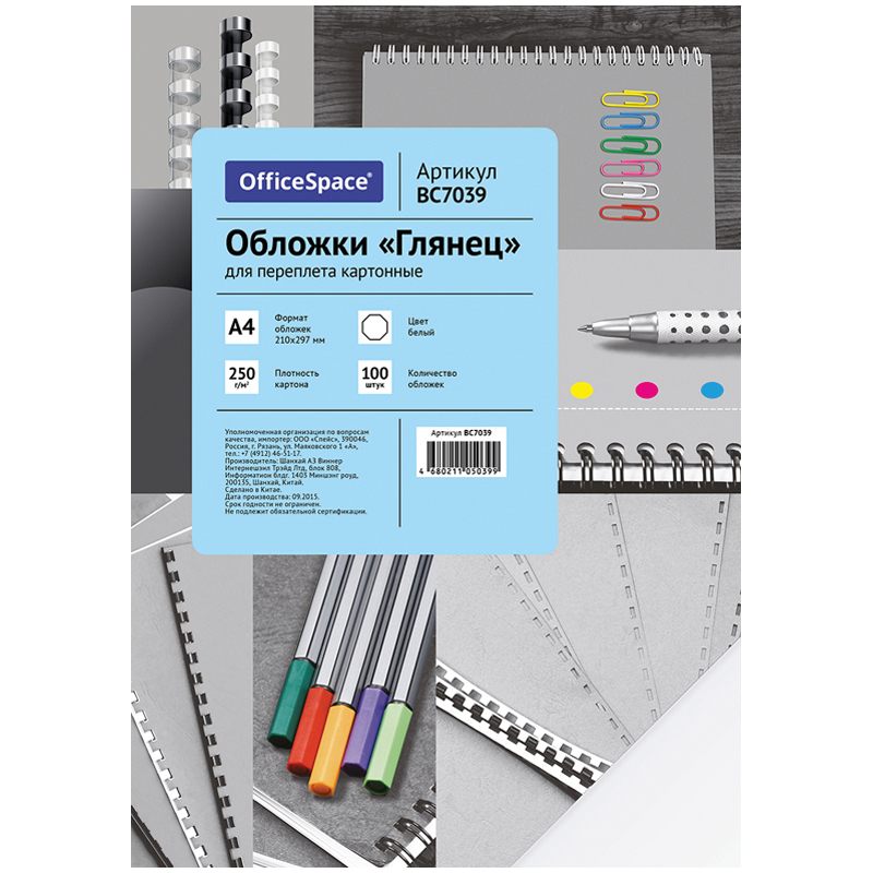 Обложка А4 OfficeSpace "Глянец" 250г/кв.м, белый картон, 100л.