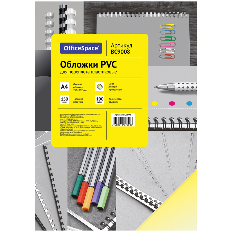Обложка А4 OfficeSpace "PVC" 150мкм, прозрачный желтый пластик, 100л.