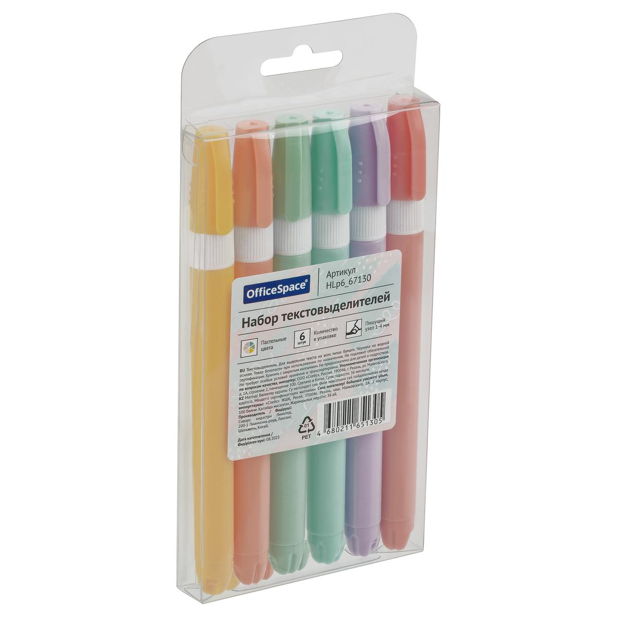 Набор текстовыделителей OfficeSpace "Simple" 6цв., пастельные, 1-4мм, чехол с европодвесом