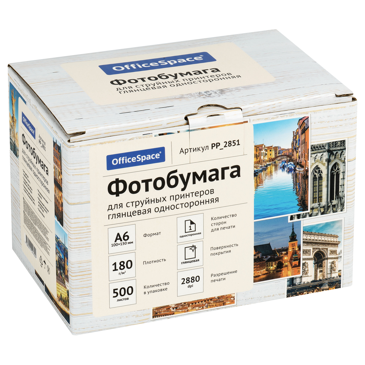 Фотобумага А6 (100*150) для стр. принтеров OfficeSpace, 180г/м2 (500л) глянцевая односторонняя