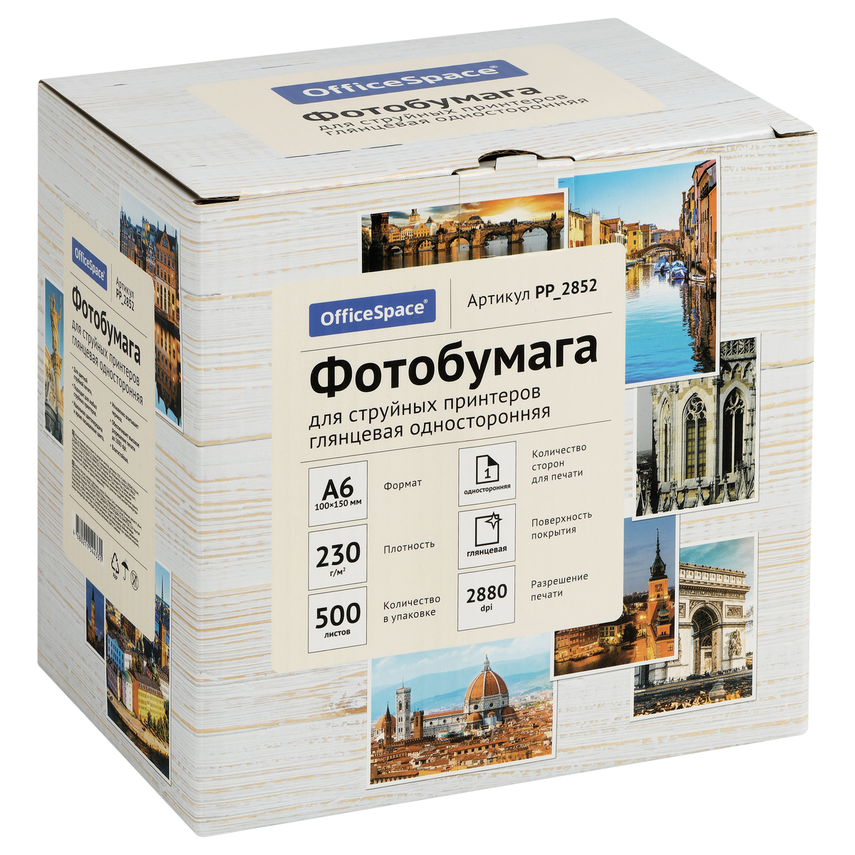 Фотобумага А6 (100*150) для стр. принтеров OfficeSpace, 230г/м2 (500л) глянцевая односторонняя