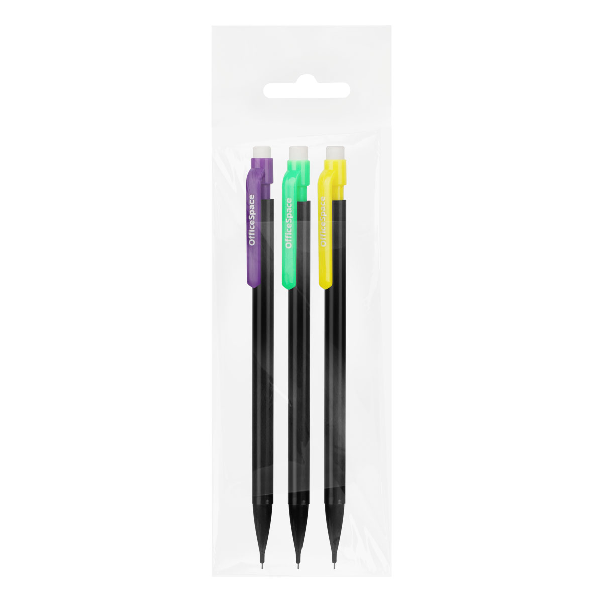 Набор карандашей механических OfficeSpace, 0,5мм, с ластиком, ассорти, 3шт (фасовка)