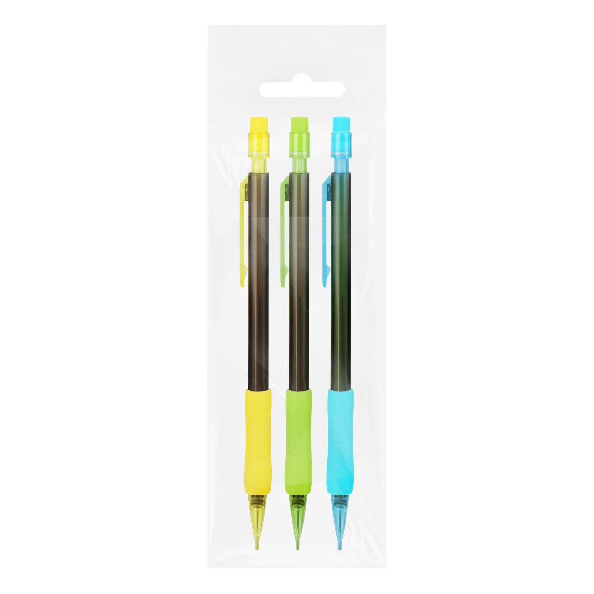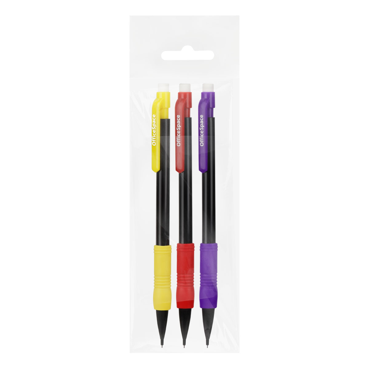 Набор карандашей механических OfficeSpace, 0,5мм, грип, с ластиком, ассорти, 3шт (фасовка)