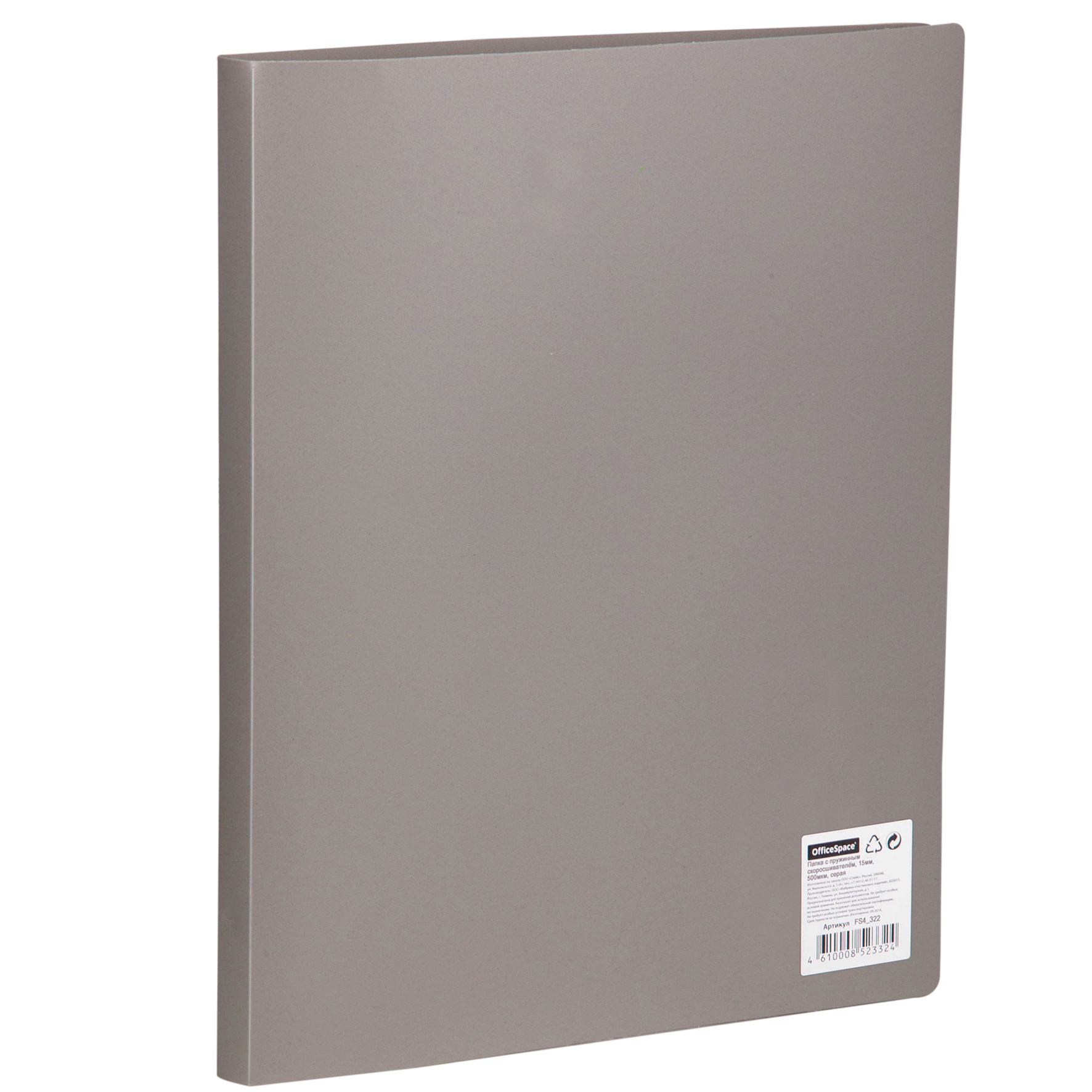 Папка с пружинным cкоросшивателем OfficeSpace А4, 14мм, 450мкм, пластик, серая