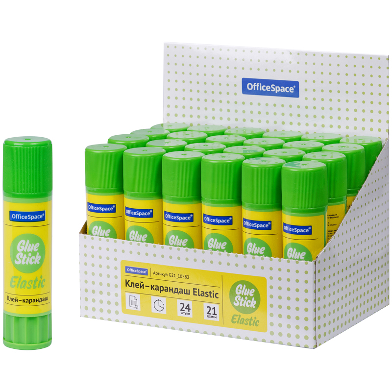 Клей-карандаш OfficeSpace "Elastic", 21г, улучшенный, дисплей, ПВП