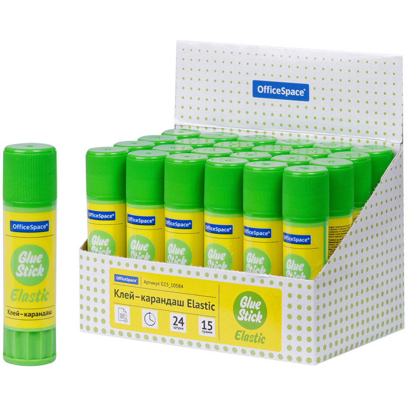 Клей-карандаш OfficeSpace "Elastic", 15г, улучшенный, дисплей, ПВП