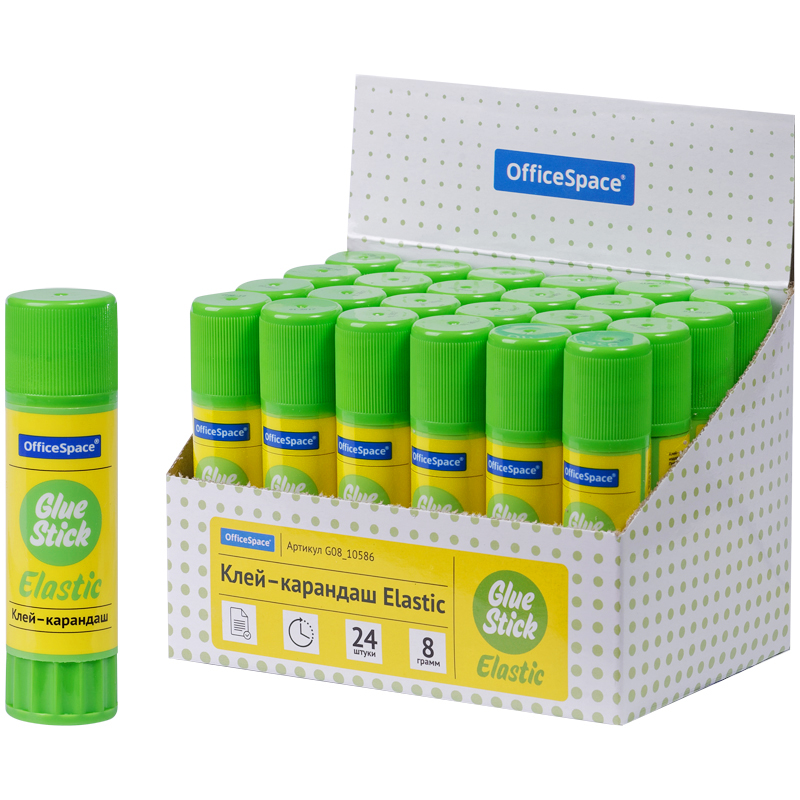Клей-карандаш OfficeSpace "Elastic", 08г, улучшенный, дисплей, ПВП