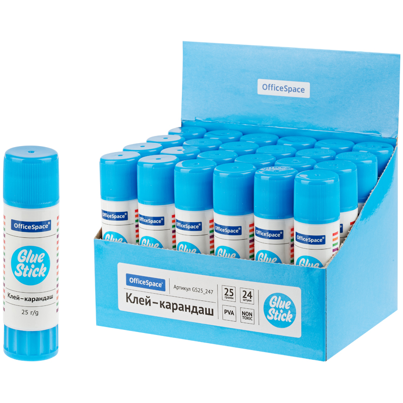 Клей-карандаш OfficeSpace, 25г, дисплей, ПВА