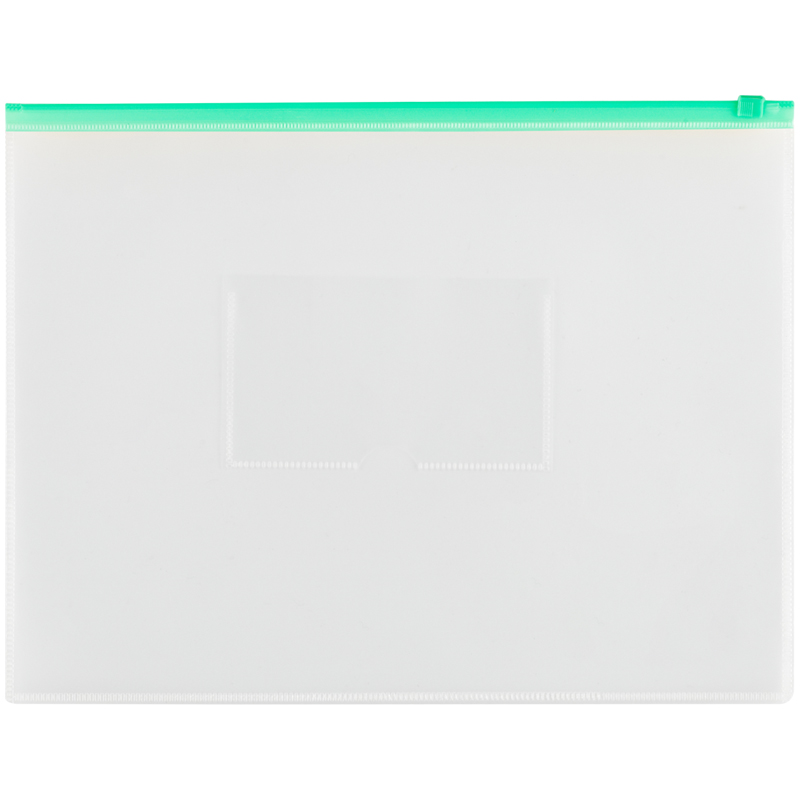 Папка-конверт на zip-молнии OfficeSpace А4, полипропилен, 150мкм, прозрачная, карман, молния зеленая