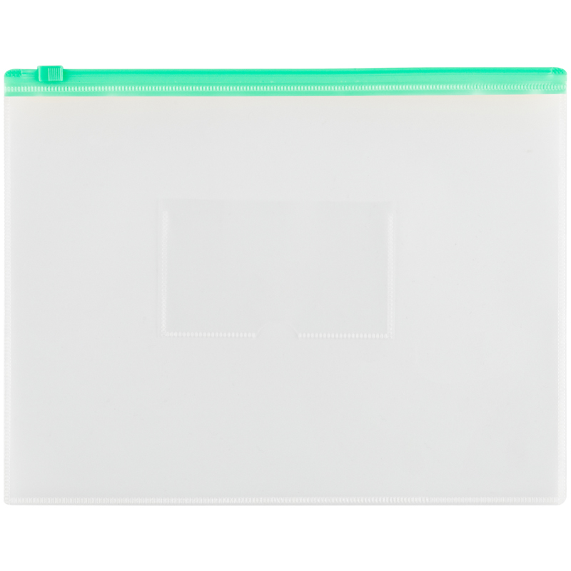Папка-конверт на zip-молнии OfficeSpace А5, полипропилен, 150мкм, прозрачная, карман, молния зеленая