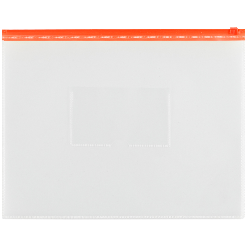Папка-конверт на zip-молнии OfficeSpace А4, полипропилен, 150мкм, прозрачная, карман, молния красная