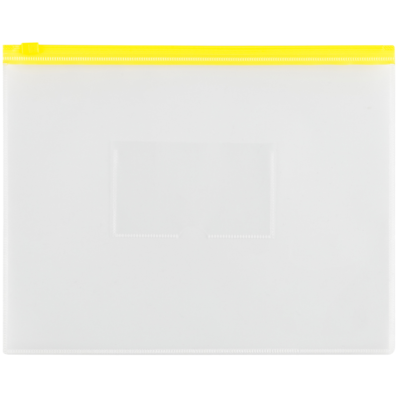 Папка-конверт на zip-молнии OfficeSpace А5, полипропилен, 150мкм, прозрачная, карман, молния желтая