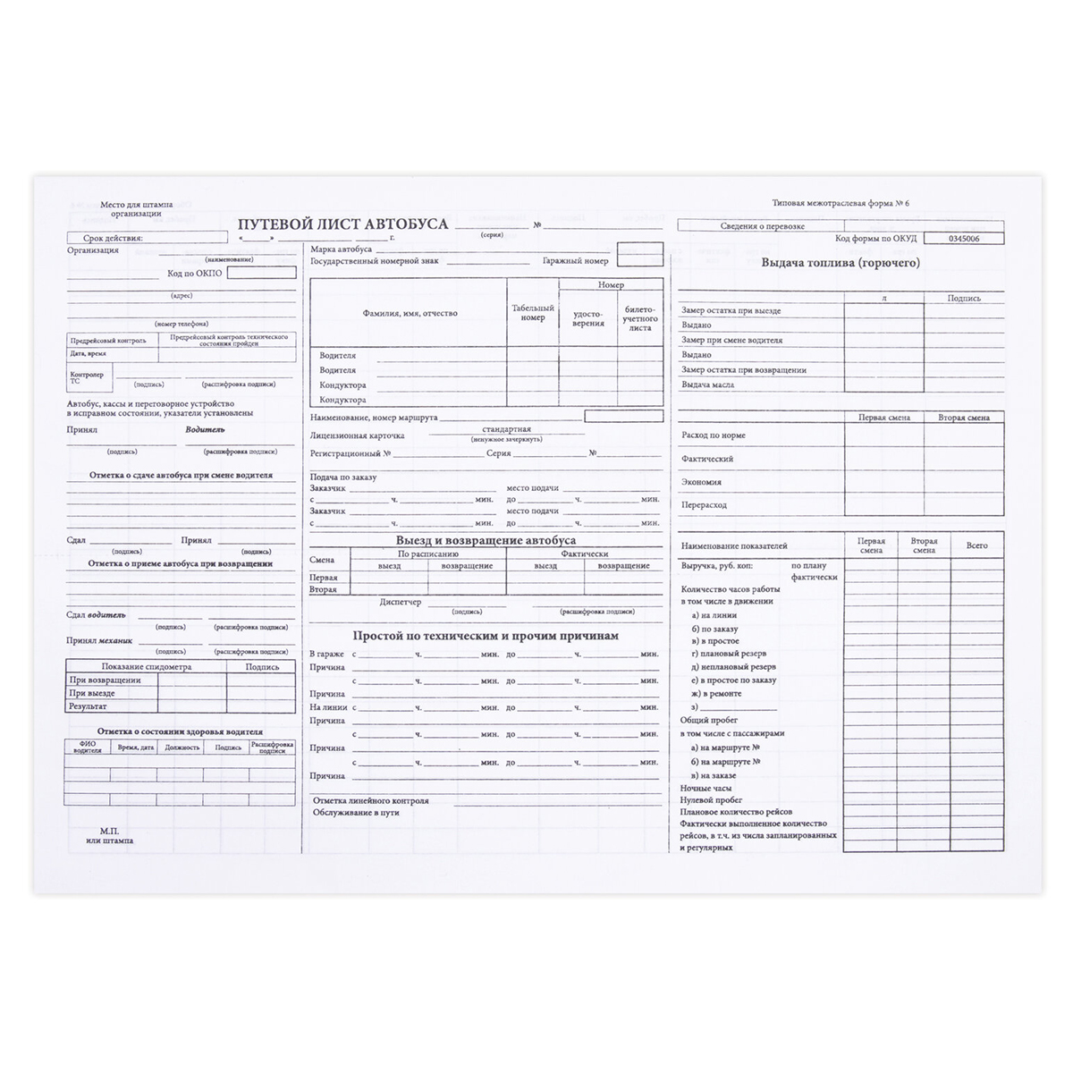 Бланк Путевой лист автобуса (форма №6), А4, офсет, 100 экз., в пленке т/у