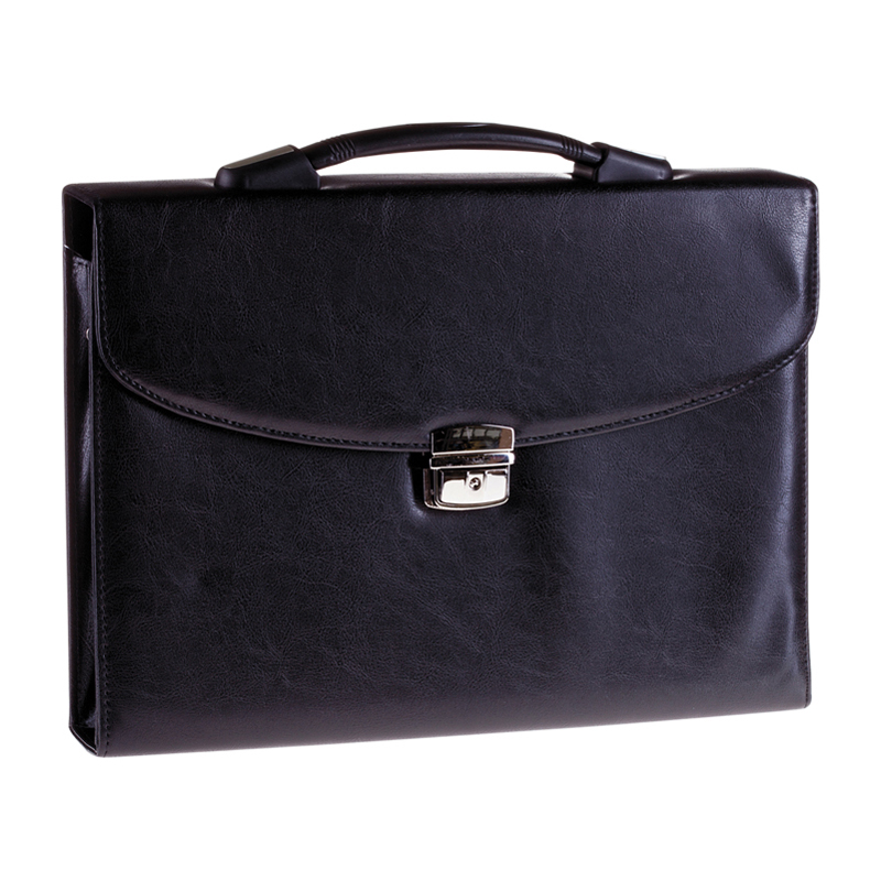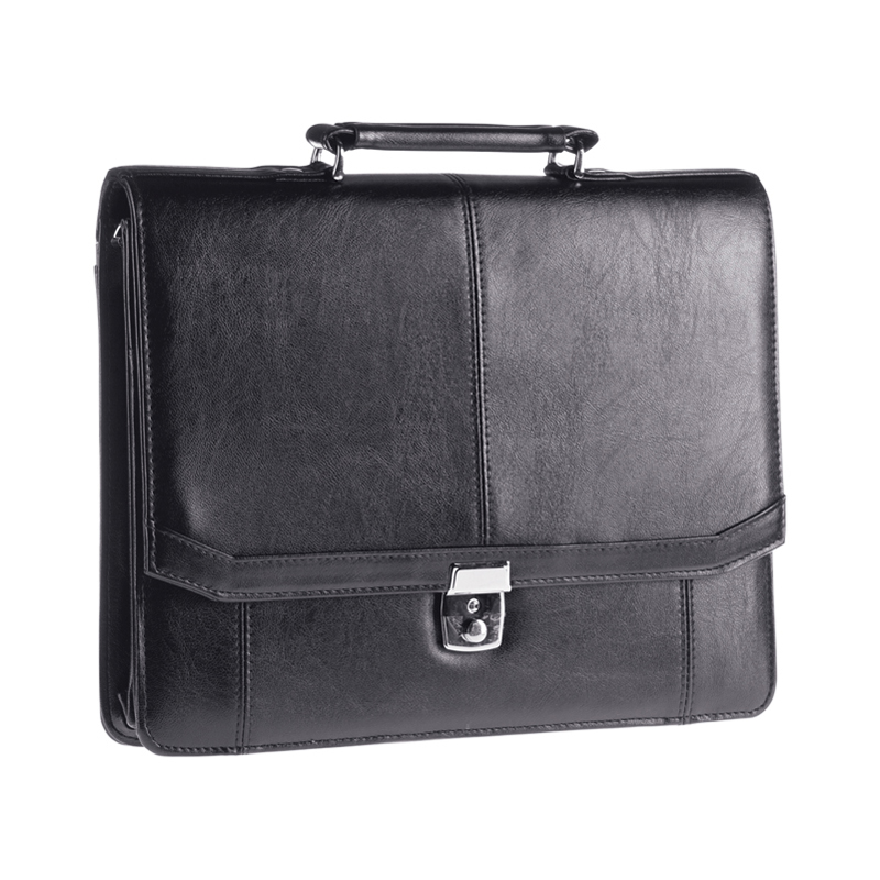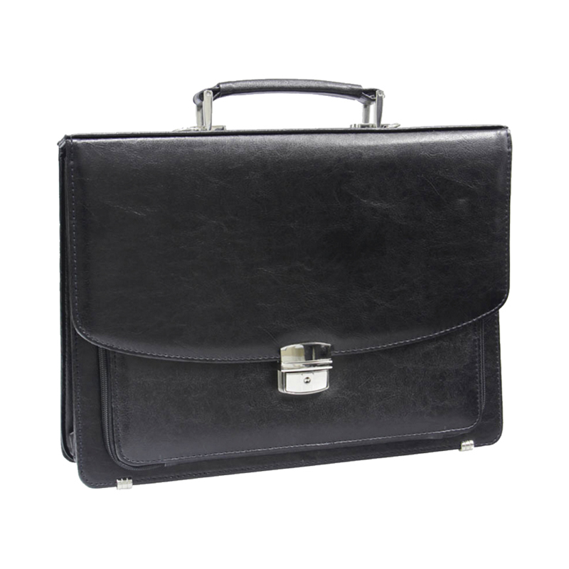 Портфель OfficeSpace "Siena", кожзам, черный, 2 отделения, метал. замок