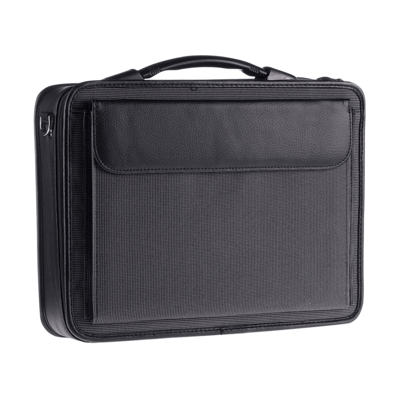 Портфель OfficeSpace "Hannover", ткань, черный, 3 отделения, метал. замок, с ремнем