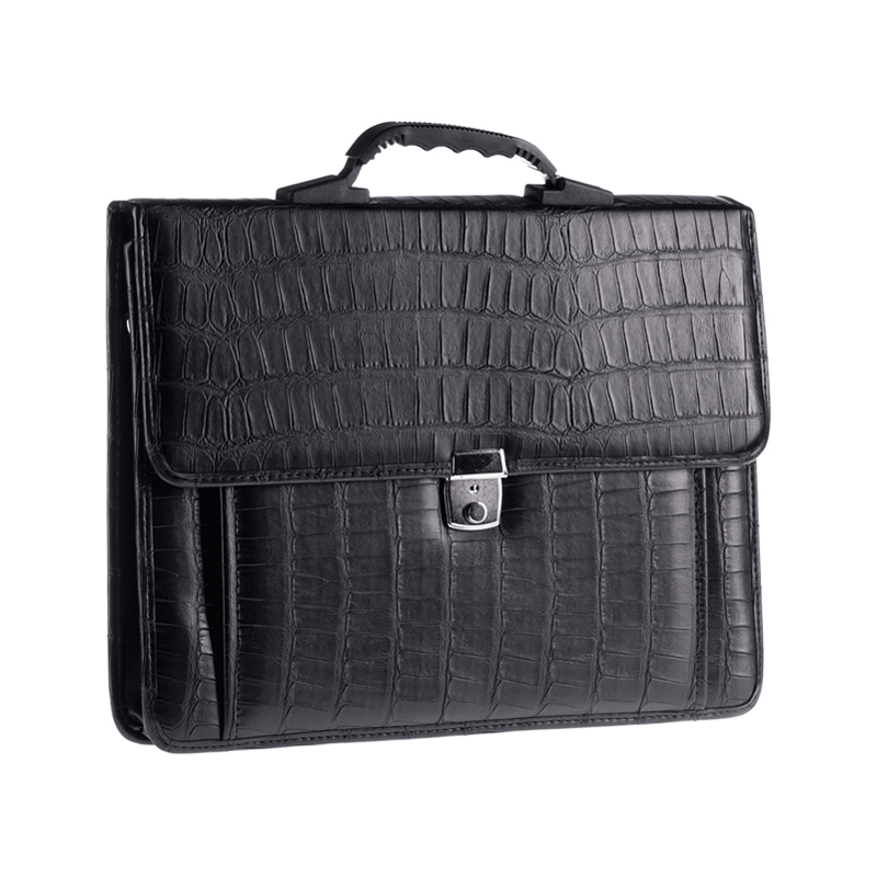 Портфель OfficeSpace "Palermo", кожзам, кайман, черный, 3 отделения, метал. замок, с ремнем