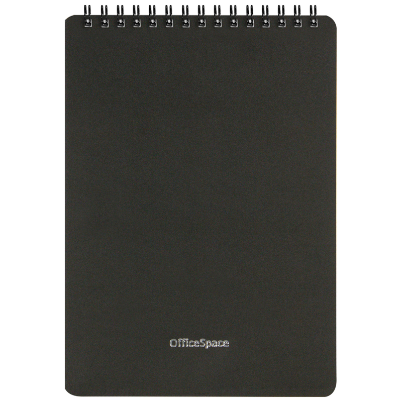 Блокнот А5 60л. на гребне OfficeSpace "Base", черная пластиковая обложка