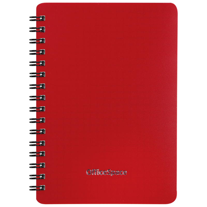 Записная книжка А6 60л., на гребне OfficeSpace "Base", красная пластиковая обложка
