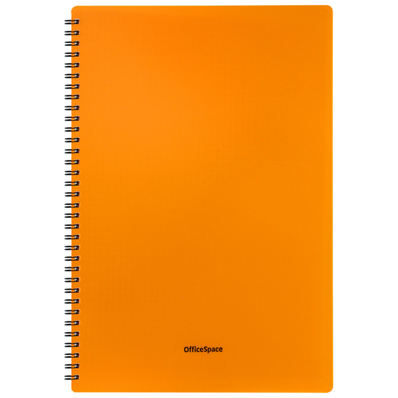 Тетрадь 60л. А4 клетка на гребне OfficeSpace "Neon", пластиковая обложка, оранжевая