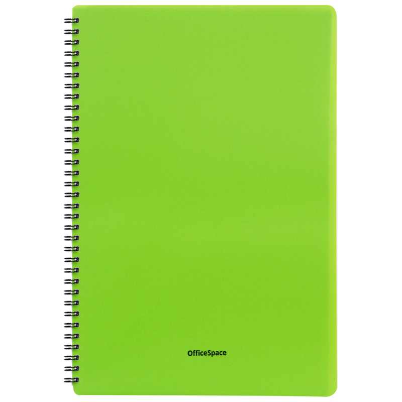 Тетрадь 48л. А4 клетка на гребне OfficeSpace "Neon", пластиковая обложка, салатовая