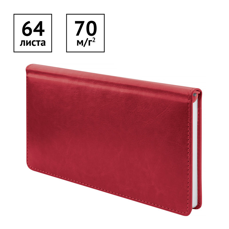 Еженедельник датированный 2021г., карманный, 64л., кожзам, OfficeSpace "Nebraska", красный