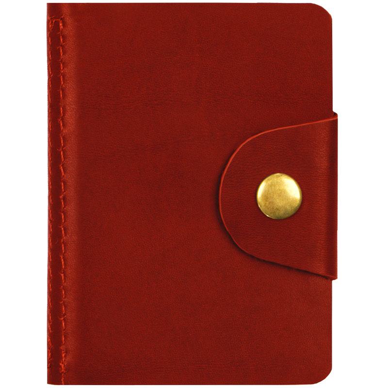 Визитница карманная OfficeSpace на кнопке, 10*7см, 18 карманов, натуральная кожа, красный
