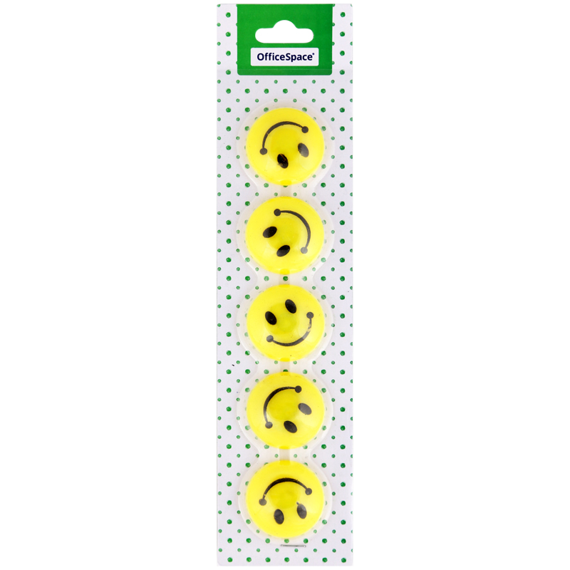 Магнит для досок OfficeSpace "Смайлик" 30мм, 5шт., европодвес