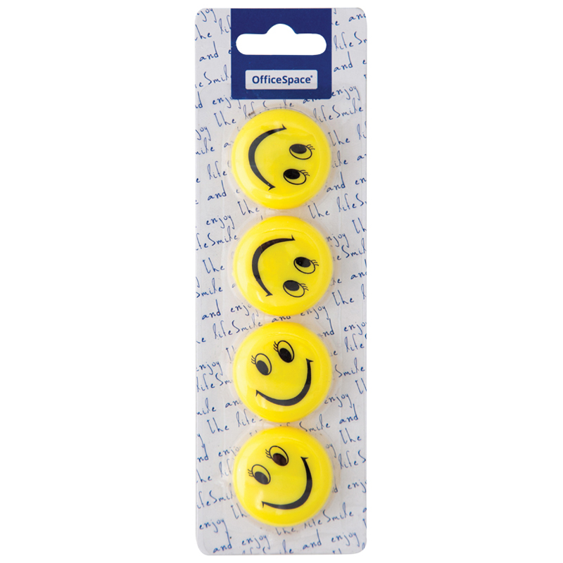Магнит для досок OfficeSpace "Смайлик", 4 упаковки (18шт.)