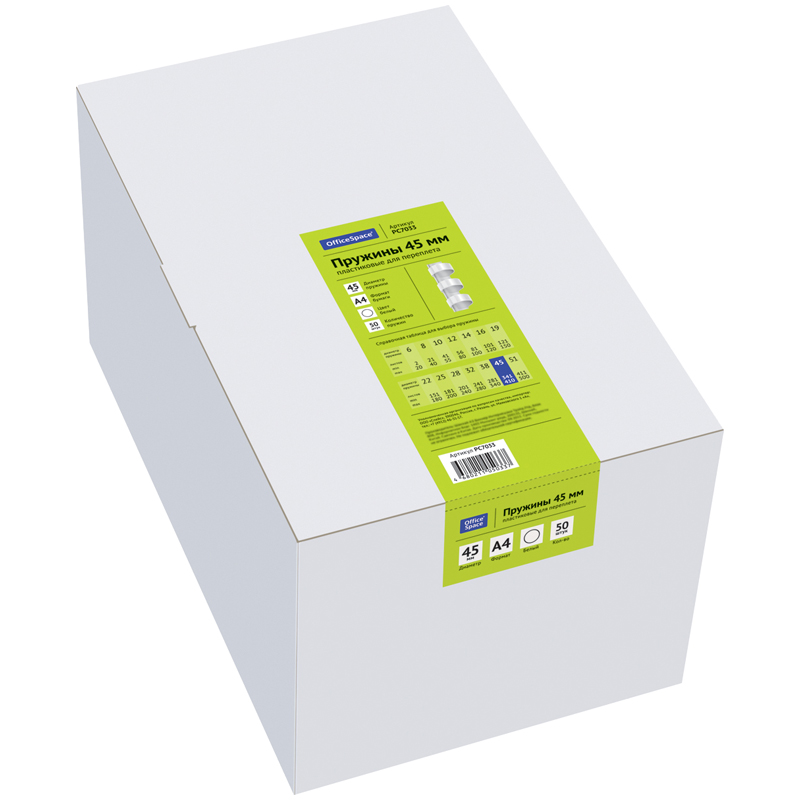 Пружины пластик D=45мм OfficeSpace, белый, 50шт.