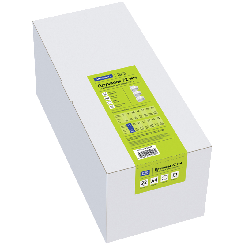 Пружины пластик D=22мм OfficeSpace, белый, 50шт.