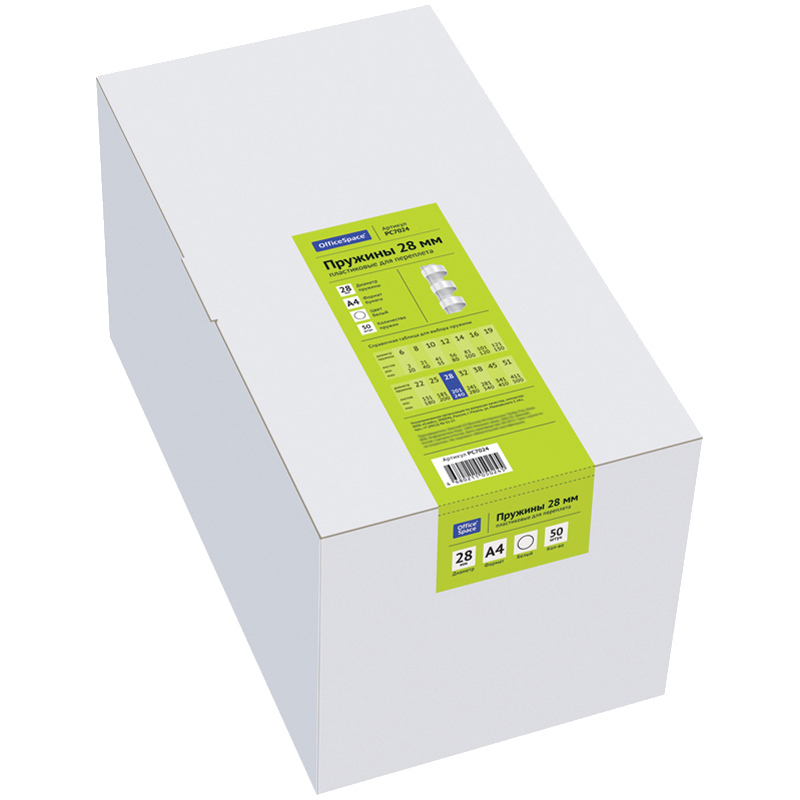 Пружины пластик D=28мм OfficeSpace, белый, 50шт.