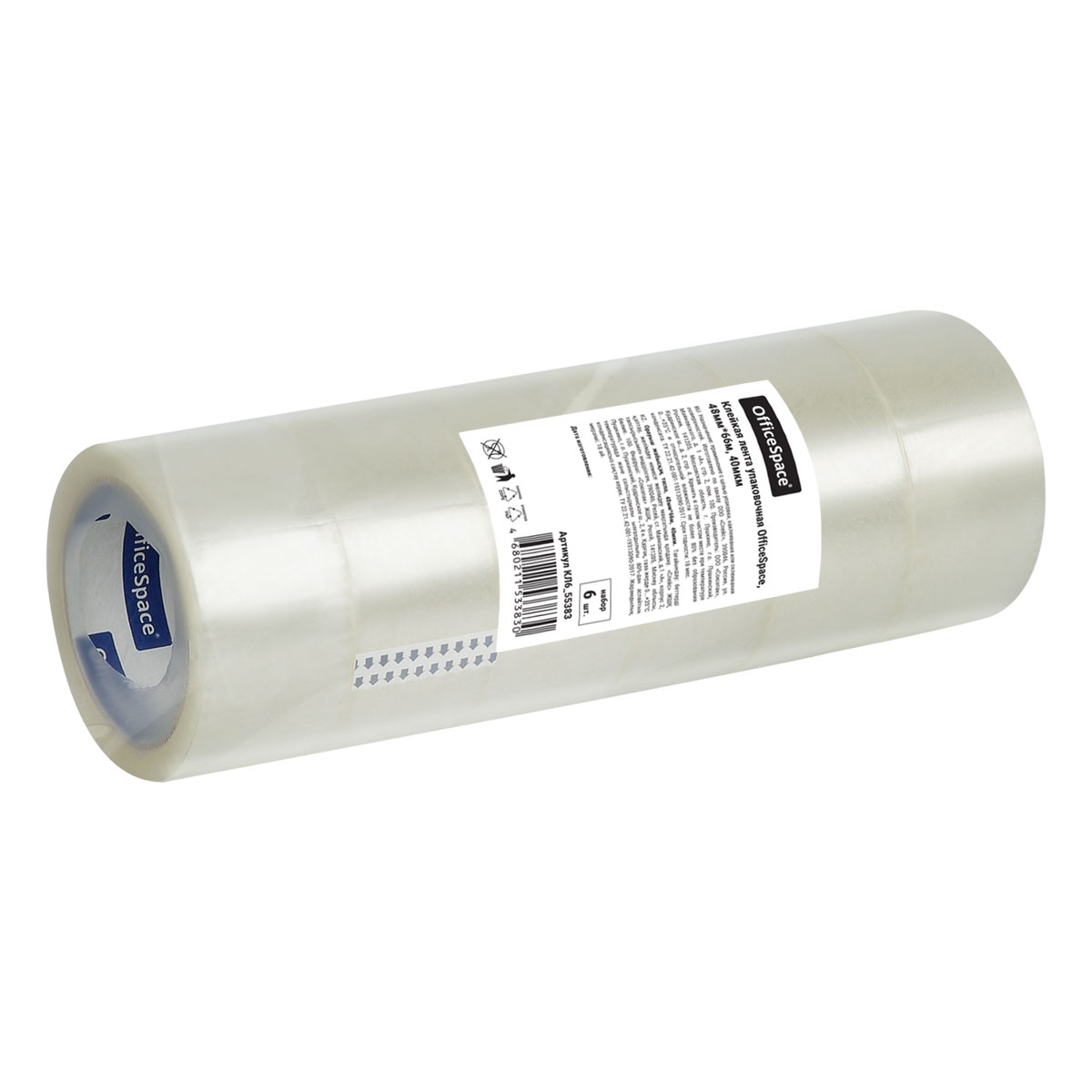 Клейкая лента упаковочная OfficeSpace, 48мм*66м, 40мкм, комплект 6шт.
