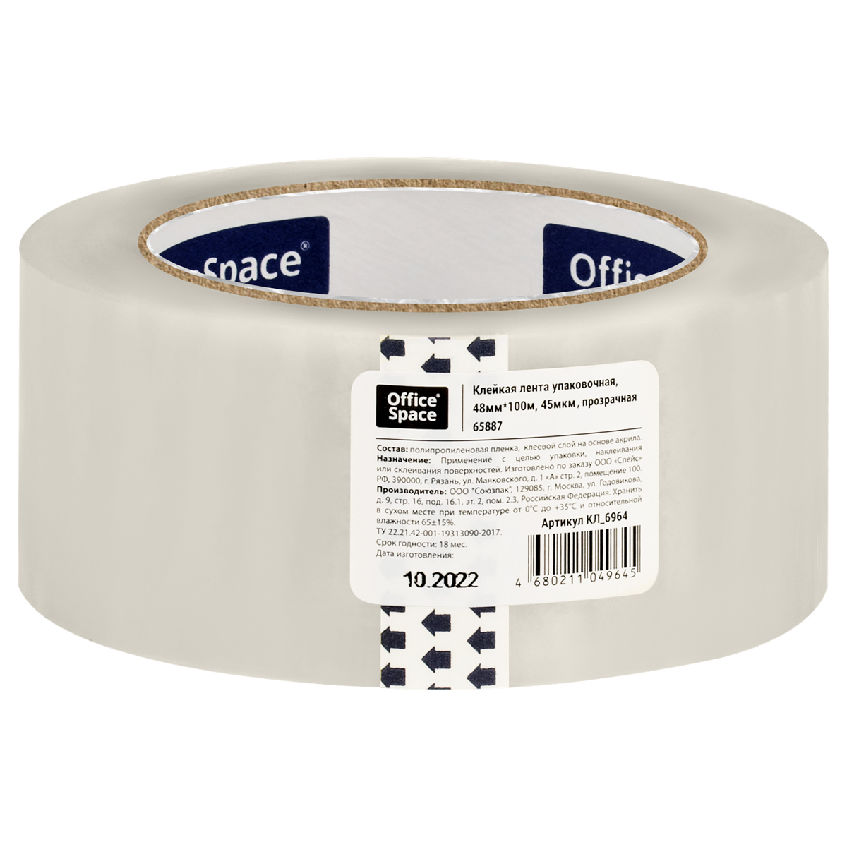 Клейкая лента упаковочная OfficeSpace, 48мм*100м, 45мкм, ШК