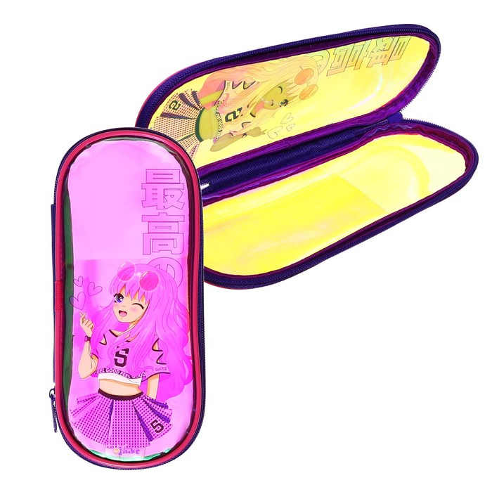 Пенал-футляр мягкий 90 х 220 х 25 мм, морозостойкий полимер с эффектом голографии, ПМК 35-85 "Аниме Тянка" 68784
